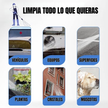 - Hidrolimpiadora a Batería no solo se puede usar para limpiar todo tipo de vehícules cómo coches, motos, bicicletas, sinó que también se puede usar para limpiar terrazas, ventanas, pisos, casas, muebles de exterior, etc. También se puede usar a presión como rociador en su patio y jardín, limpiando el polvo de las plantas, irrigando y regando el césped o bañar a tus mascotas (bajar la presión al mínimo por seguridad y aumentar en caso de que sea insuficiente)